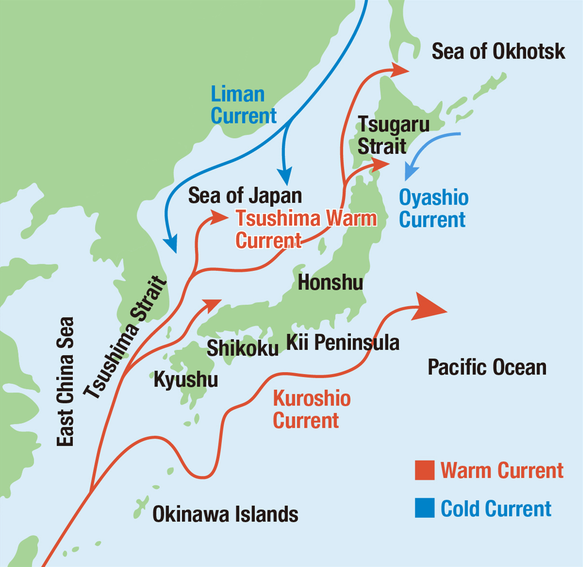 Japan is an island nation surrounded by the ocean on all sides. The total length of the Japanese coastline is about 34,000 km. This is a distance close to 40,000 km, which is the approximate circumference of the earth. In addition, a number of ocean currents flow through water adjacent to Japan, which collectively support biodiversity in this area.