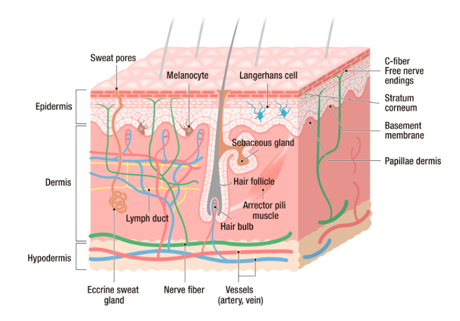 • Left: from stratum corneum to basal layer