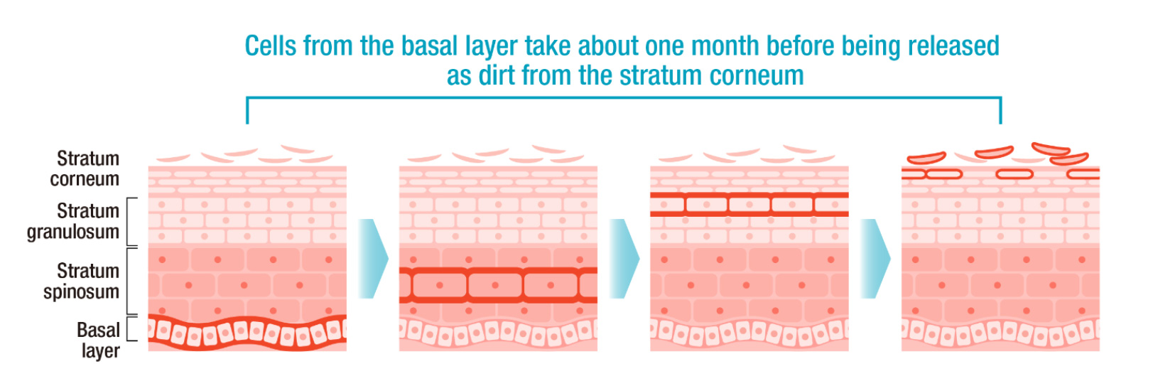• Right: from stratum granulosum to basal layer