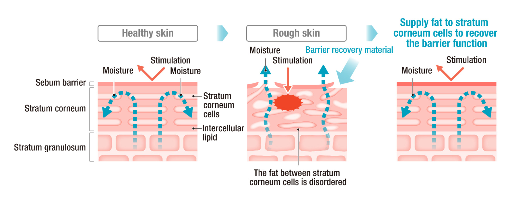 • Up: from stratum corneum to basal layer