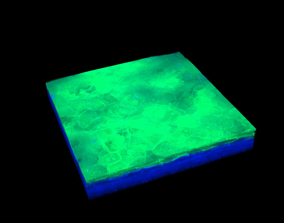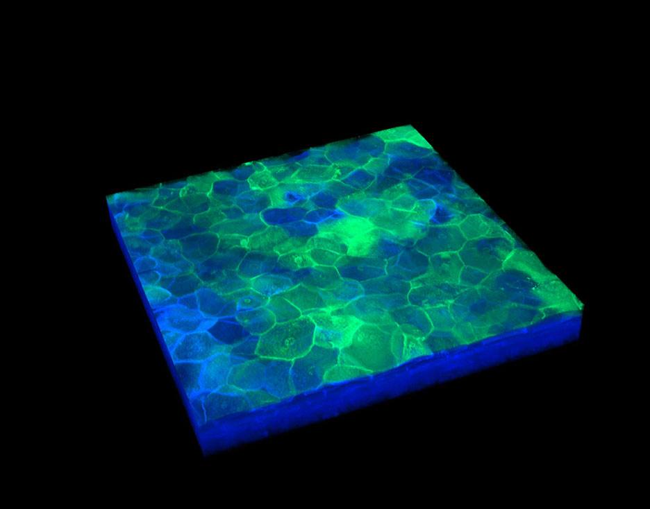 Microscopic images of deep, cultured skin achieved with the multiphoton confocal microscope.