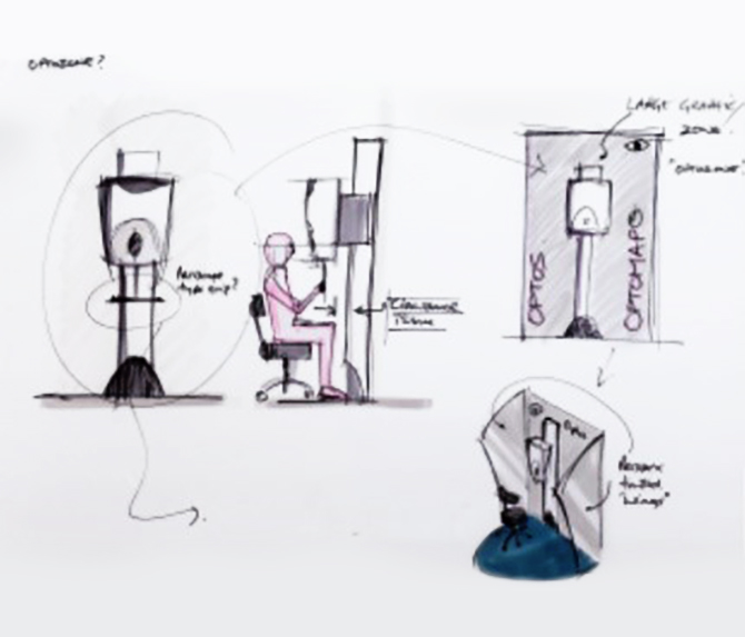 Determined that his son's misfortune must not be repeated, medical technology designer Douglas set about inventing a fast, non-intrusive whole-retina scanner, which was patient-friendly enough for a five-year-old but would give examiners a full view of the eye, unlike the partial glimpse which most machines provided at the time. He studied the principles and structures of current retinal imaging devices, using trial and error to refine a method of photographing the entire retina at one time. He started developing such a device from scratch, and in 1992, established Optos.