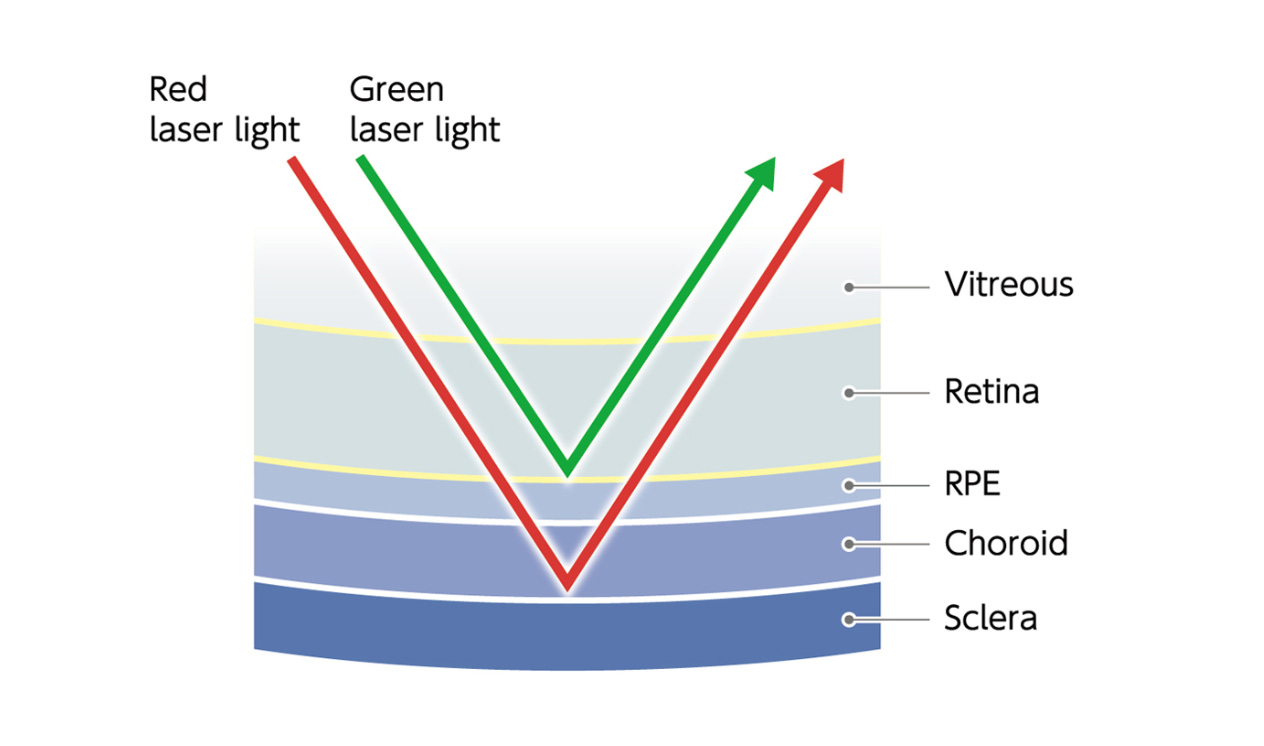 The secret of the ultra-widefield technology capabilities that Douglas developed lies in a unique optical system utilizing a concave ellipsoidal mirror and a safe laser light that scans the retina. An eye-safe, low-power red and green laser light reflects on the ellipsoidal mirror, and then scans the retina through the pupil. At this point, irradiating laser light instantly captures an ultra-widefield, high-definition image by changing the angle of laser incidence employing a special mirror that enables high-speed, high-accuracy driving and positioning. Moreover, a mydriatic is not required, making the process more beneficial to patients. Douglas Anderson obtained a patent for this technology in 1998 and commercialized it. It was an amazing achievement just eight years after his son Leif's misfortune.