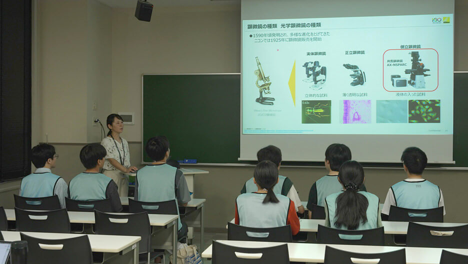 Associate Professor Naohito Takatori of TMU, who co-organized the JBO events and took part in both event planning and question design. He also contributed to the planning of the “research experience.” He added, "Observation is the first step in research — it begins with deciding what to observe and how to observe it. With a deeper understanding of microscopes, students can make better choices for effective observation. I also wanted students to understand how humanity has expanded the possibilities of observation by means of microscopy — and to experience that through Nikon's AX confocal laser scanning microscope."