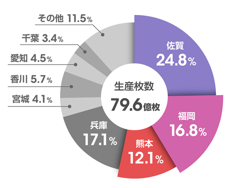 ノリは日本全国で生産されていますが、実はその半数以上が有明海産(佐賀県、福岡県、熊本県)です。なぜ、有明海は群を抜く産地なのでしょう。