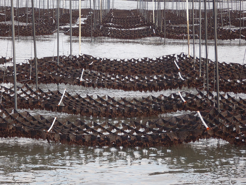 成熟した胞子を網に付着させる採苗が行われると、以後は海が舞台となります。