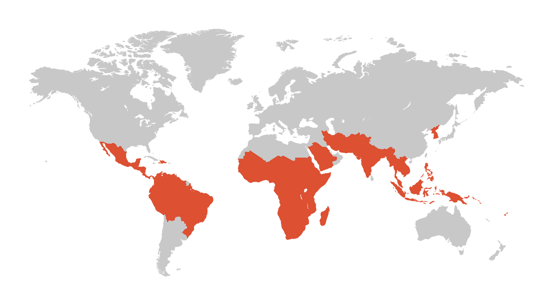 マラリアの流行地域は、アフリカ、アジア、中南米などの熱帯・亜熱帯が中心。近年では毎年2億人以上が感染し、40万人以上の人が命を落としています。マラリアはかつてヨーロッパや北米などでも流行していましたが、上下水道の整備や、公衆衛生の向上、殺虫剤や特効薬の利用などにより撲滅されています。日本も1950年代に撲滅に成功。しかし、海外で感染した旅行者が帰国・入国後に発症するというリスクはいまだに残されています。多くの人々が世界中を行き来する時代。マラリアは流行地域での対策はもちろん、国際的な取り組みが必要な喫緊の課題となっているのです。
