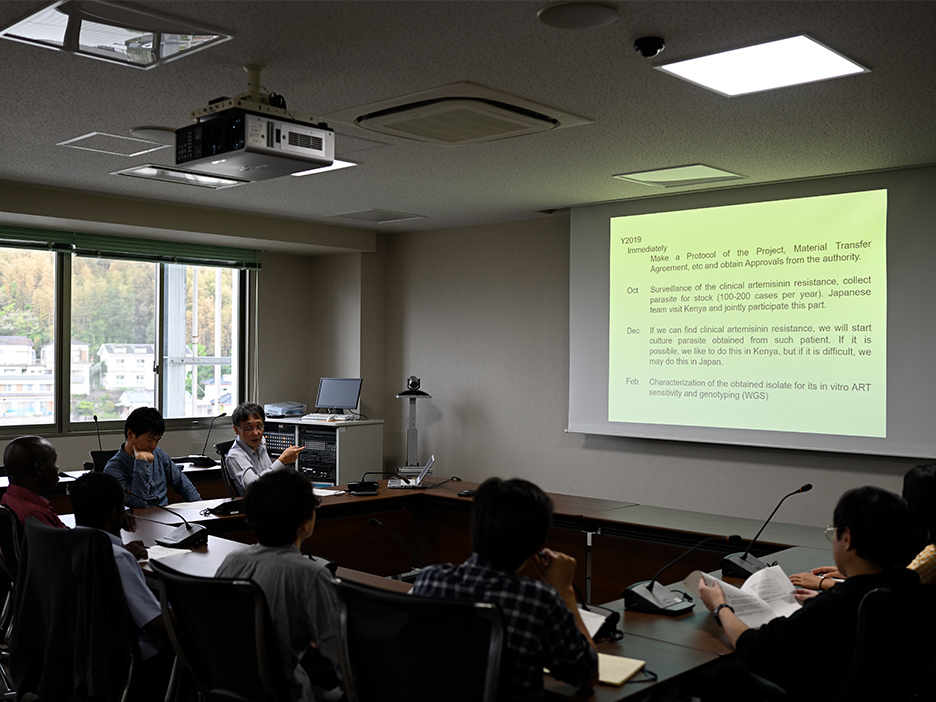 マラリア研究の日本における重要拠点のひとつが、長崎大学 熱帯医学研究所(NEKKEN)の原虫学分野です。熱帯医学研究所は、1942(昭和17)年に設立された東亜風土病研究所を前身とし、熱帯病の撲滅・制御にむけた研究に取り組んでいます。現在、その活動は多岐にわたり、エボラ出血熱、ジカ熱、マラリアなどの克服に貢献しています。また、約50年前からアフリカのケニアとの協力関係を継続。また、ケニアを始めその他のアフリカ諸国、アジア、中南米各国の研究者や研修生、学生を研究所へ受け入れています。