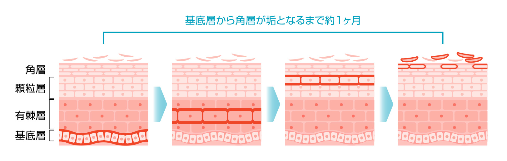 ・左:角層から基底層 ・右:顆粒層から基底層(物質が本来届かない顆粒層にまで達している)