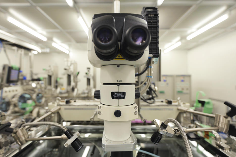 ここで、試料の色や形、大きさなどを観察する目的で使われているのが、ニコンの実体顕微鏡『SMZ1270i』。しかしその様子は通常と大きく異なります。なぜなら特殊なシャーレはクリーンチャンバー内にセットされ観察はチャンバーの上に設けられた窓から行うためです。そのため大型ステージに取り付けられた顕微鏡自体がXYZ方向に動くという非常に特殊なものでした。その様子は、冒頭の動画コンテンツでもご覧いただけます。