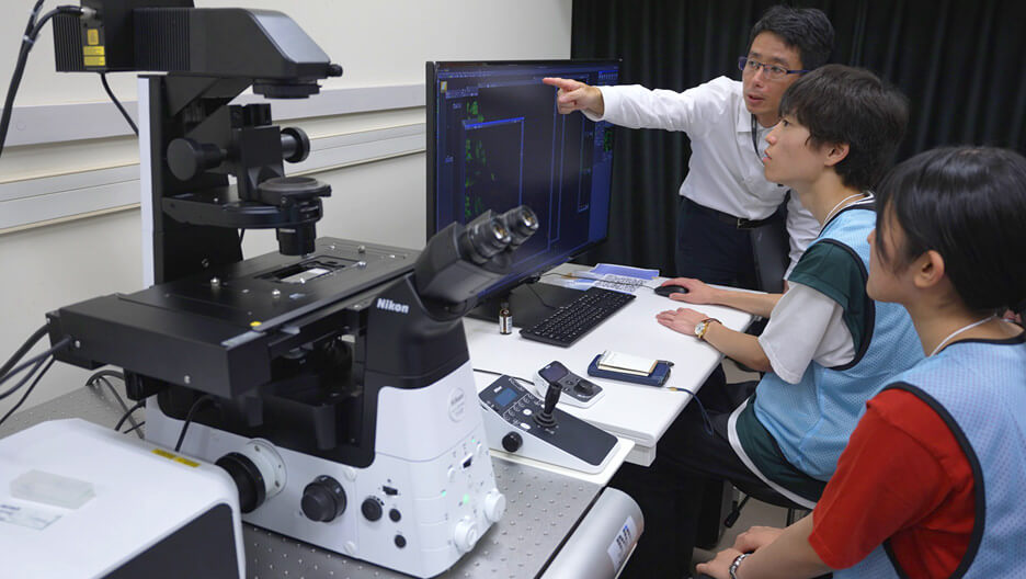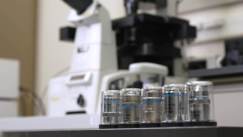 髙鳥先生は普段の研究や学生への指導に、ニコンの顕微鏡を使用しています。「現在A1とAXの両方の顕微鏡を使っています。A1は約12年使っていてカスタマイズも施し、私には右腕のような存在です。広い視野と高い解像度、対物レンズのバリエーションが多彩なことがありがたいです」というお言葉をいただきました。